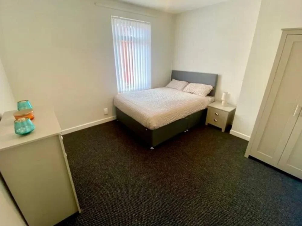 London Bedroom for Rent | Bills and Cleaning Included A bright room with a double bed windows, a wardrobe, and a table. A room with a double bed, bedding, pillows, a window, a chest of drawer, a t able, and a chair. Double Room for Rent in Tooting | Minutes Walk to Station